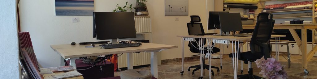 - Ein großer Tisch – perfekt als Zuschneidetisch oder für Team- und Projektbesprechungen.